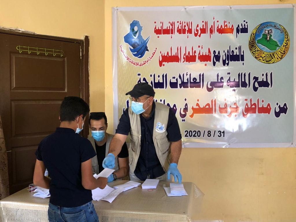 • القسم الإغاثي في الهيئة بالتعاون مع منظمة (أم القرى) يقدمان المنح المالية إلى نازحي جرف الصخر في محافظة أربيل
