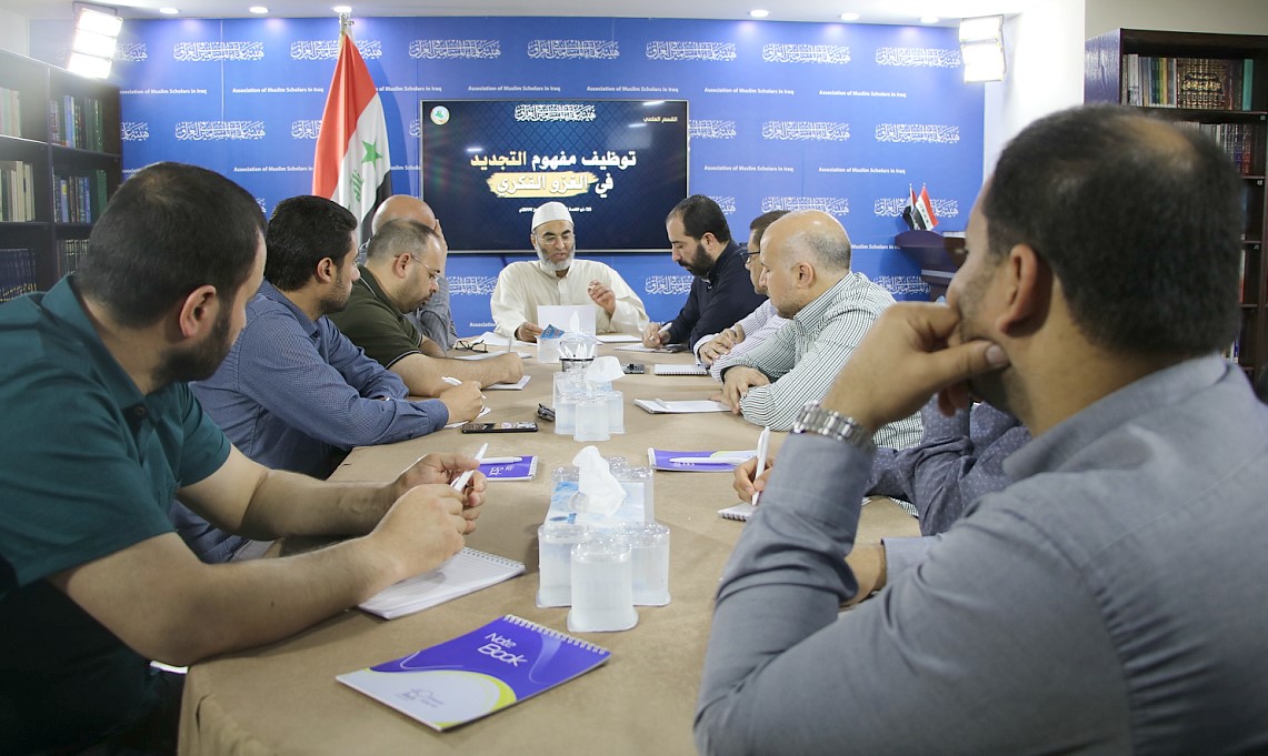 الهيئة نت ـ عمّان| عقد القسم العلمي في هيئة علماء المسلمين في العراق درسًا جديدًا ضمن سلسلة الدروس والمحاضرات العلمية، ألقى فيه الشيخ الدكتور (عمر مكي) مسؤول القسم محاضرة بعنوان: (توظيف مفهوم التجديد في الغزو الفكري)، بمشاركة عدد من طلبة العلم والباحثين في أقسام الهيئة.