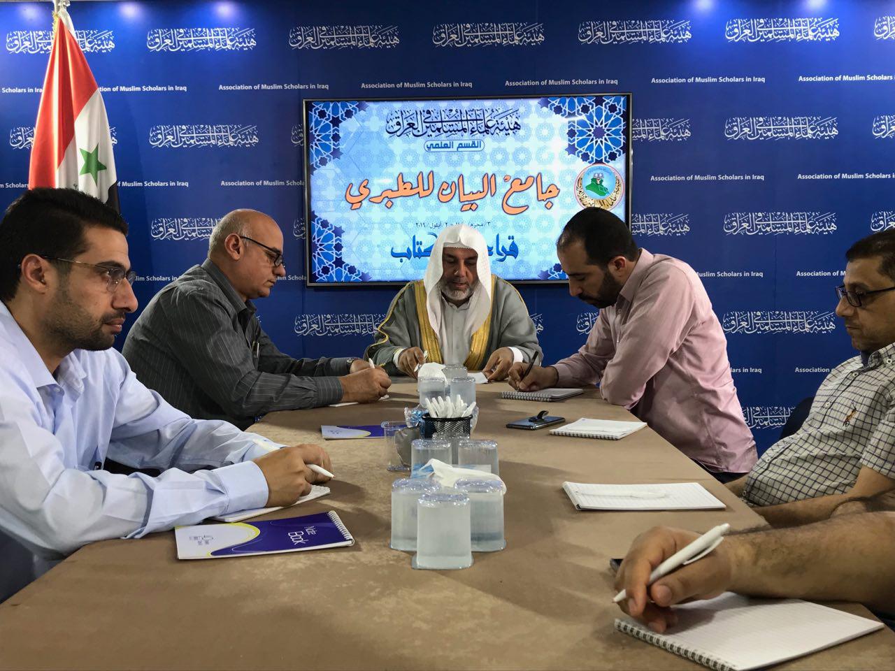 الهيئة نت ـ عمّان| عقد القسم العلمي في هيئة علماء المسلمين في العراق جلسة قراءة في كتاب (جامع البيان في تفسير القرآن) للإمام الطبري (ت310هـ)، التي أعدّ مادتها الشيخ الدكتور (إسماعيل الفرّاجي) نائب مسؤول قسم الدعوة والإرشاد في الهيئة.
