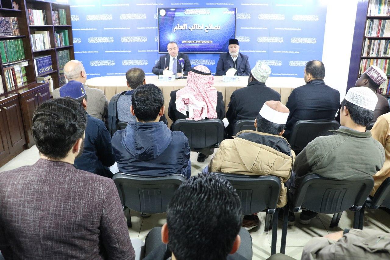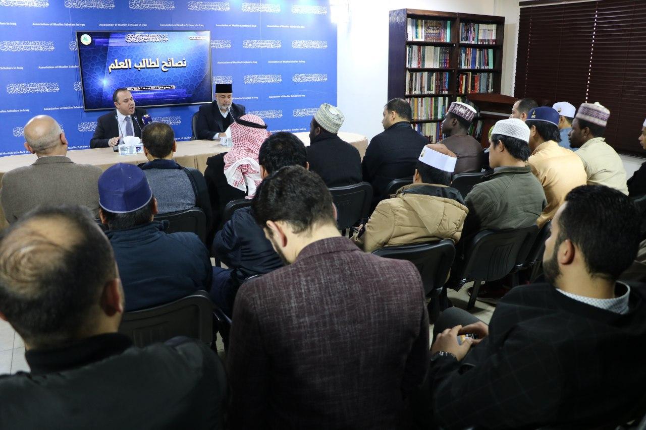 الهيئة نت – عمّان| نظّم قسم الدعوة والإرشاد في هيئة علماء المسلمين في العراق؛ محاضرة بعنوان: (نصائح لطالب العلم)، ألقاها الدكتور (علي الرواشدة) الأستاذ في جامعة البلقاء التطبيقية في الأردن، اليوم السبت 15/2/2020م.