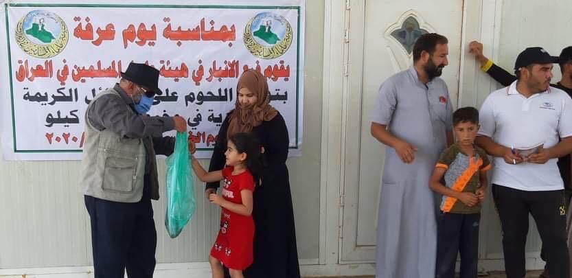 الهيئة نت| قام فرع هيئة علماء المسلمين في محافظة الأنبار غرب العراق بحملتين إغاثيتين لتوزيع لحوم الأضاحي على العائلات النازحة في مخيمات النازحين، الأولى في مخيم (الكيلو/ 18) غرب مدينة الرمادي، والثانية في مخيم (الحبانية) غرب مدينة الفلوجة بمحافظة الأنبار.