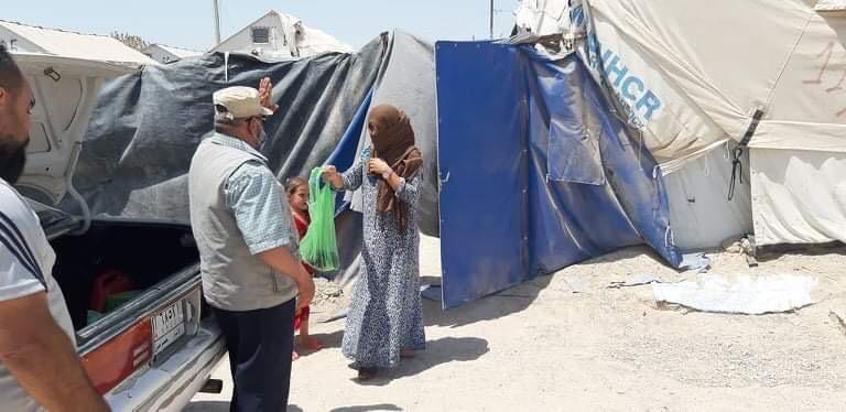 وشملت الحملة الأولى توزيع لحوم الأضاحي على (80) عائلة من العائلات السورية الكريمة النازحة في مخيم الكيلو/ 18، والحملة الثانية شملت (100) عائلة كريمة نازحة في مخيم الحبانية وزعت الفرع عليهم لحوم أضاحي عيد الفطر المبارك.
