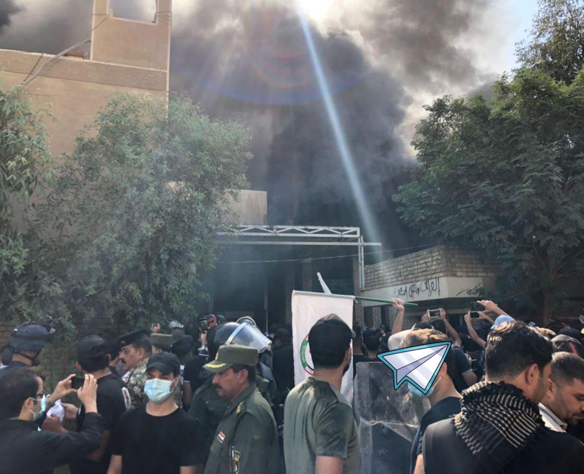 أضرمت عناصر تنتمي لميليشيات الحشد الشعبي، اليوم السبت، النار في مقر الحزب الديمقراطي الكردستاني في العاصمة بغداد، تنديدا بتصريحات القيادي الحزب الديمقراطي (هوشيار زيباري) وانتقاده الميليشيات المسلحة الموالية لإيران والمندمجة في مؤسسات الدولة في وقتٍ سابق.