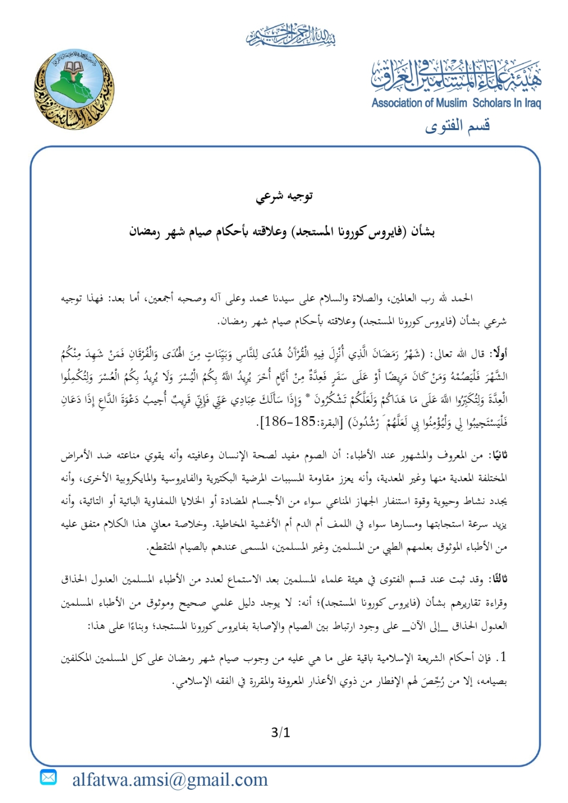 قسم الفتوى في هيئة علماء المسلمين يصدر بيانًا بشأن ...
