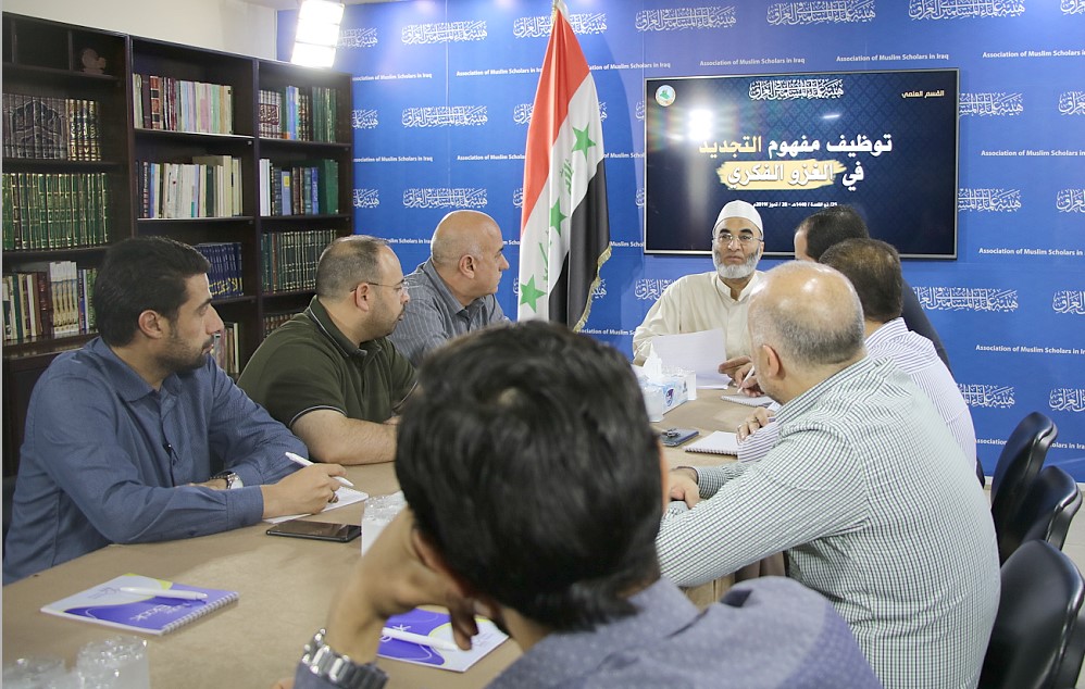 الهيئة نت ـ عمّان| عقد القسم العلمي في هيئة علماء المسلمين في العراق درسًا جديدًا ضمن سلسلة الدروس والمحاضرات العلمية، ألقى فيه الشيخ الدكتور (عمر مكي) مسؤول القسم محاضرة بعنوان: (توظيف مفهوم التجديد في الغزو الفكري)، بمشاركة عدد من طلبة العلم والباحثين في أقسام الهيئة.