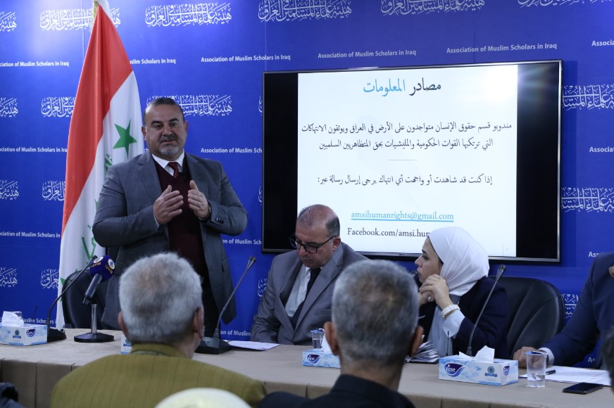 وسلّطت ورقة قسم حقوق الإنسان في هيئة علماء المسلمين التي قدّمها الدكتور (أيمن العاني) نائب مسؤول القسم؛ الضوء على جهود الهيئة في التعاطي مع انتهاكات حقوق الإنسان العراق، والتقارير الميدانية التي أعدها القسم منذ بدء مظاهرات ثورة تشرين مطلع تشرين الأول/اكتوبر 2019، ولغاية أواخر كانون الأول/ديسمبر الجاري؛ اعتمادًا على بيانات ورصد مندوبي القسم في داخل العراق.