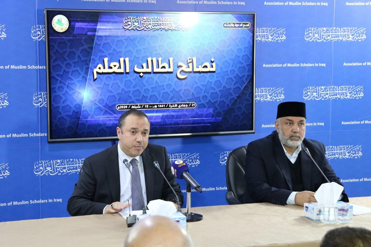 الهيئة نت – عمّان| نظّم قسم الدعوة والإرشاد في هيئة علماء المسلمين في العراق؛ محاضرة بعنوان: (نصائح لطالب العلم)، ألقاها الدكتور (علي الرواشدة) الأستاذ في جامعة البلقاء التطبيقية في الأردن، اليوم السبت 15/2/2020م.