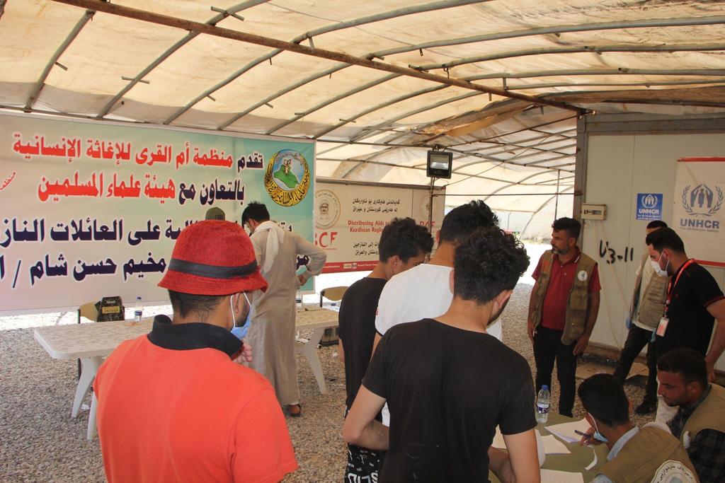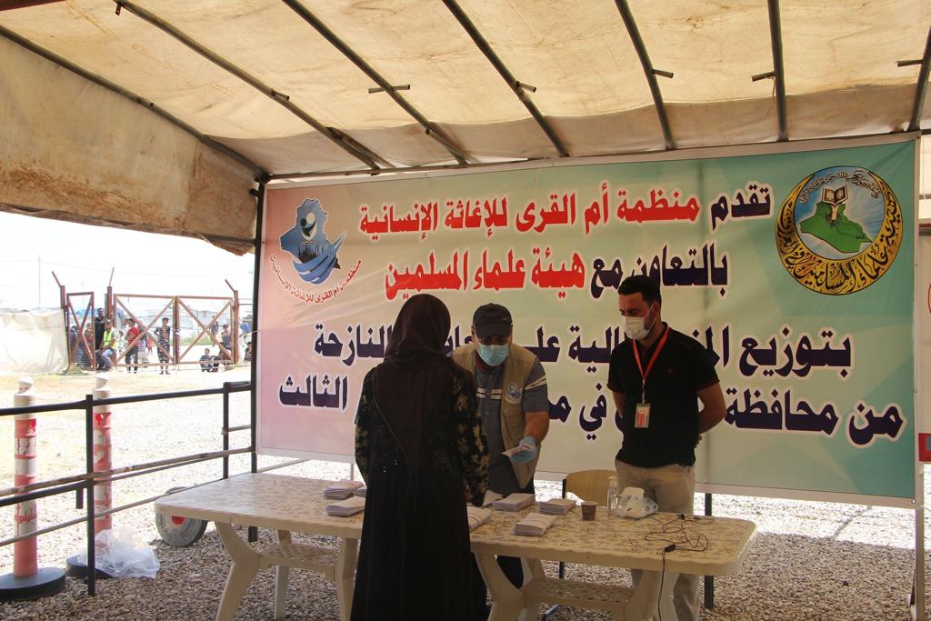 الهيئة نت| قام القسم الإغاثي في هيئة علماء المسلمين بالتعاون مع منظمة (أم القرى) للإغاثة الإنسانية؛ بحملتهما الثانية لتوزيع المنح المالية على العائلات النازحة في مخيم (حسن شام) الثالث - U3 شرق مدينة الموصل في محافظة نينوى شمالي العراق.