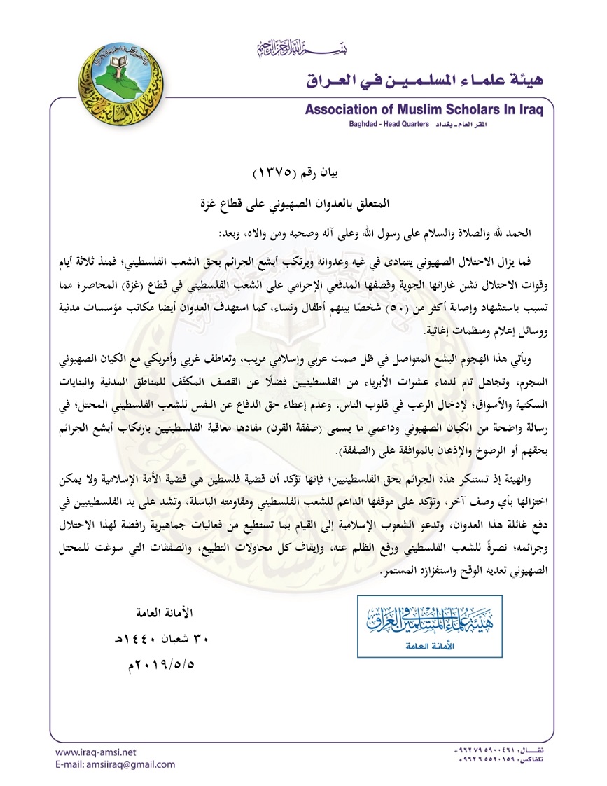بيان هيئة علماء المسلمين في العراق بشأن حملات ...